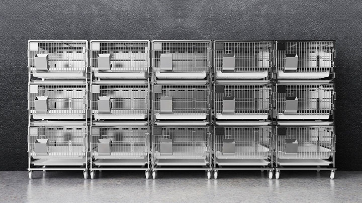 | 兔底板应可拆卸,塑料材质,底板的表面为均匀间距的圆弧凸起,间距符合兔脚掌生理结构,底板均匀分布圆孔,利于尿液排放 | |
