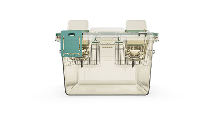 | 笼盒上盖可以直接垂直挂靠在底壳上,为操作人员提供更好的人体工程学,简化笼盒的更换程序,不用将笼盒放置在台面上,通过最小化工作区域占用率始终控制污染,这是应用无菌技术时的关键操作 | |